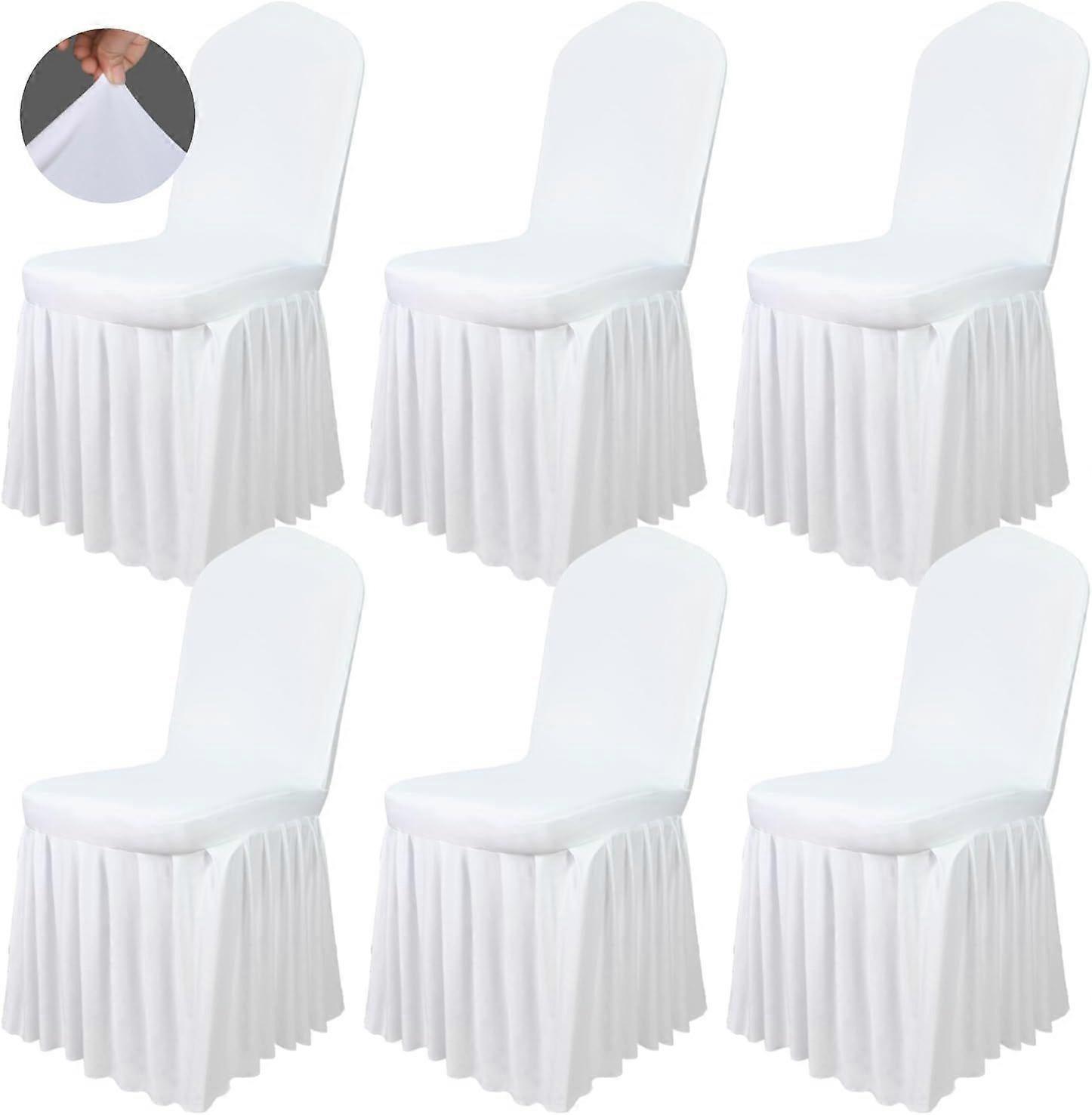 6 Pack White Chair Covers with Skirt|Super Fit Spandex Chair Seat Protector|Chair Covers W