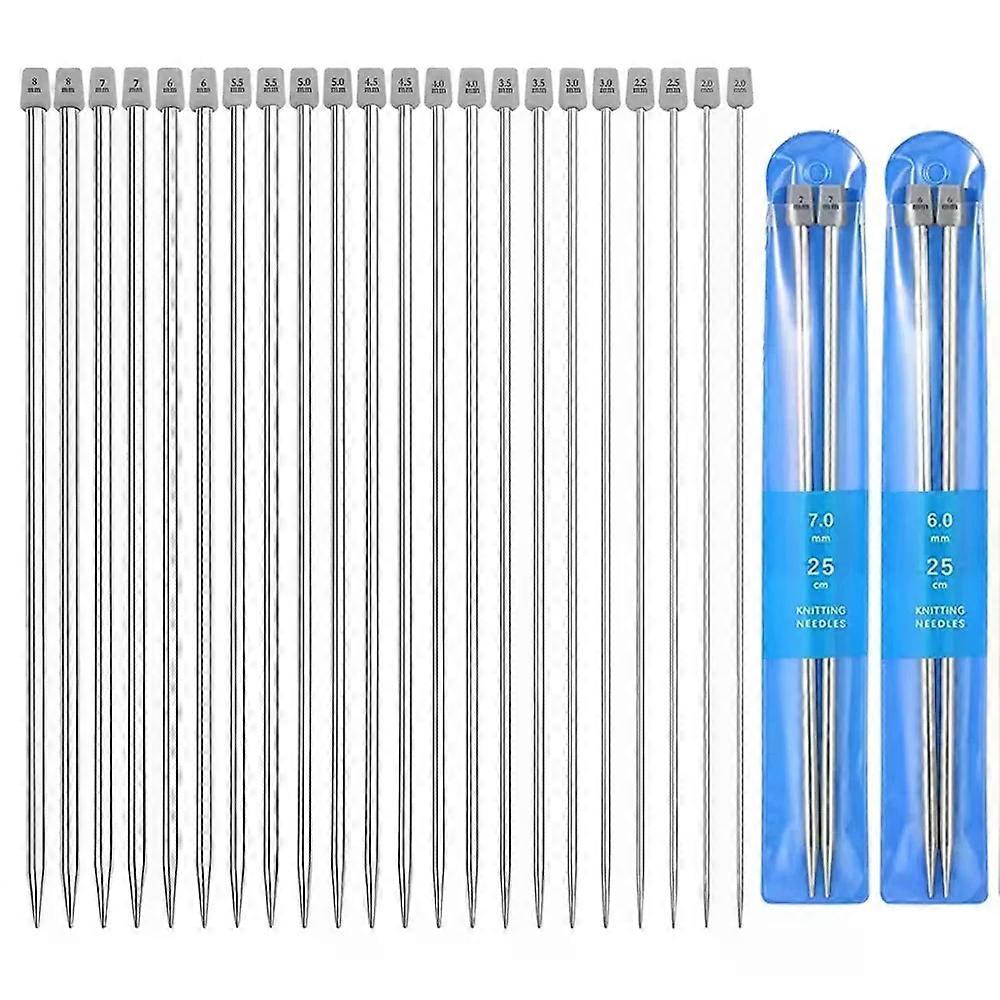 22Pcs Stainless Steel Knitting Needles 2 mm-8 mm Straight Single Pointed Crochet Hook Sets 25/35cm Sweater Needles for Knitting