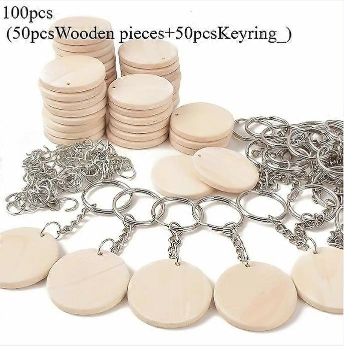 100PCS/set Natural Wooden Disk Key Holder and Keyring DIY Craft Supplies for Calendar Making, Smooth Texture Handmade Decor