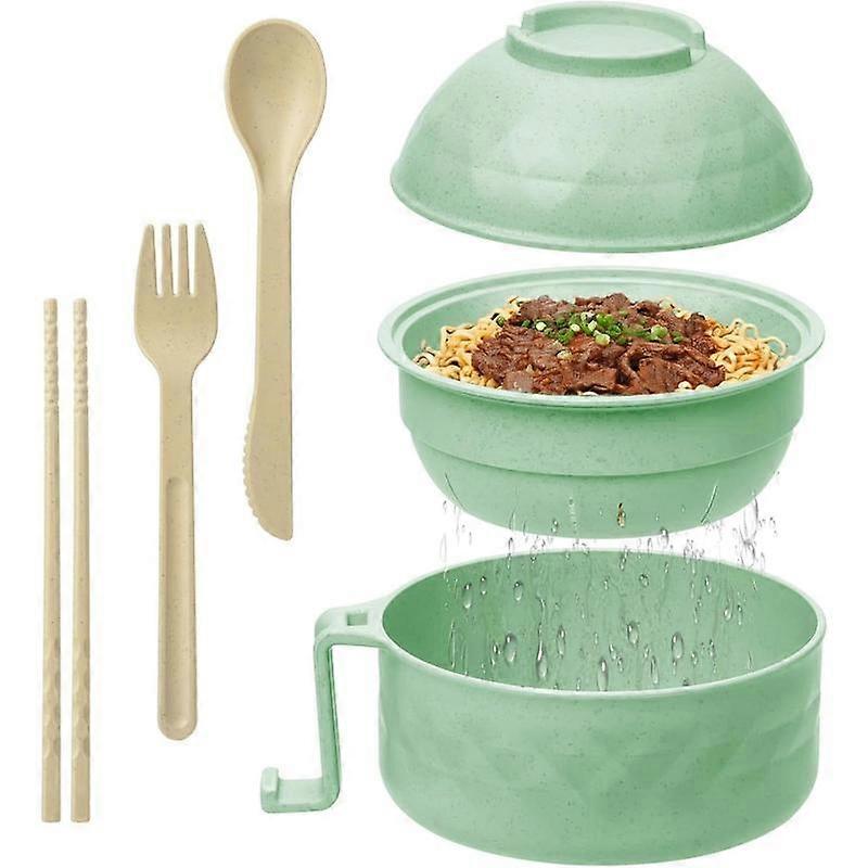 Ramen Cooker,32oz Ramen Bowl Set,Microwave Ramen Bowl, Microwave Bowl with Lid, Portable Noodle Bowls,for Office Dorm Room College (Green)