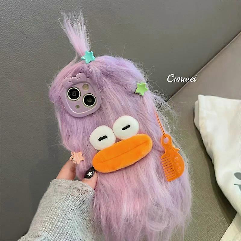 Korean Funny Fluffy Plcomh Monster Case For iPhone 17 Pro Max Case 16 15 14 13 12 11 Cute Girl Winter Warm Cover Fur Soft Coque
