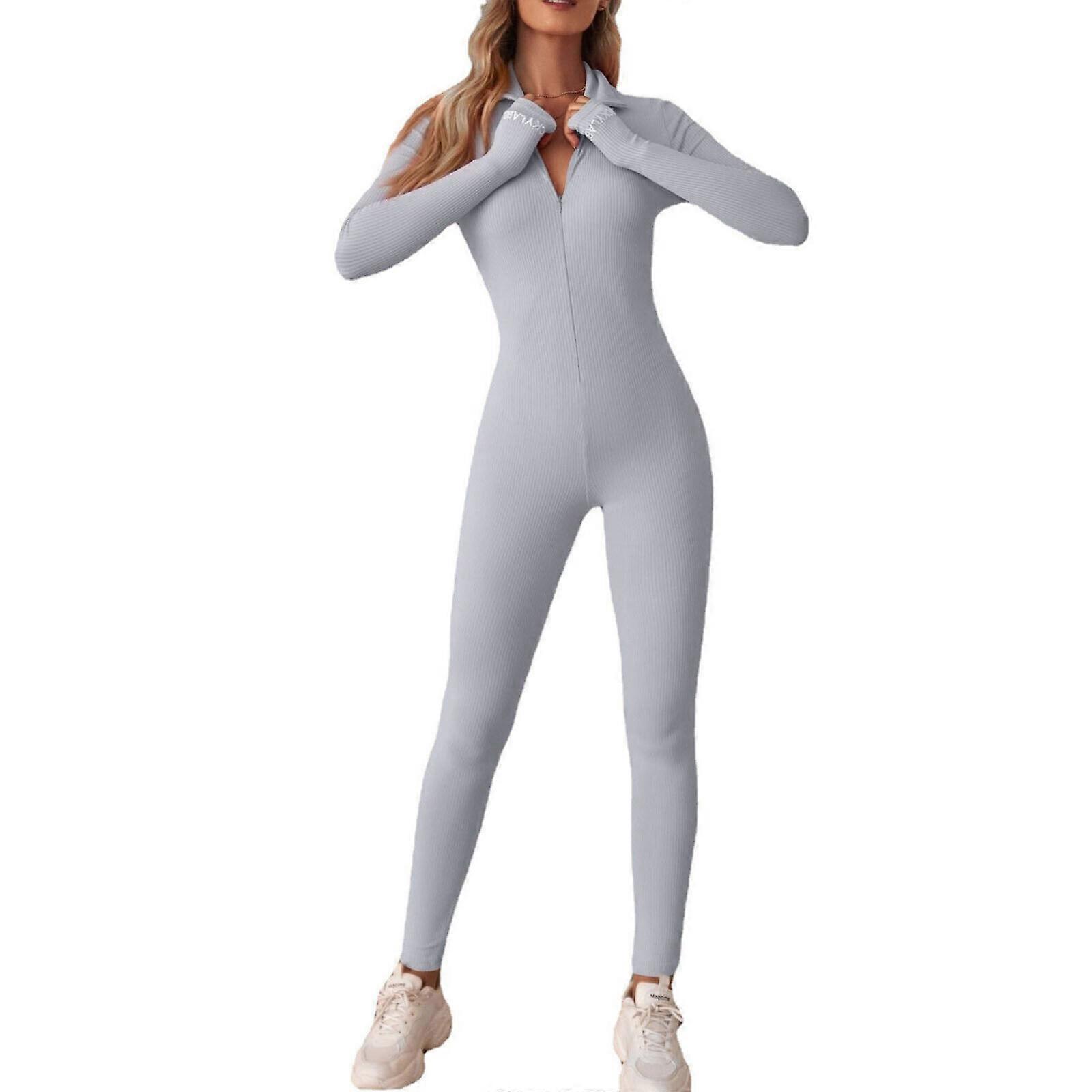 Women Full Bodycon Jumpsuit Bodysuit Long Sleeve Stretchy Skinny Rompers Catsuit