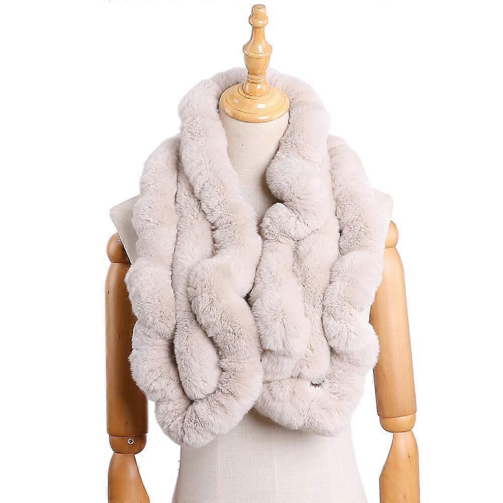 Women's Winter Warm Soft Real Rex Rabbit Fur Hand Sew Scarf Girl's Scarves Wraps