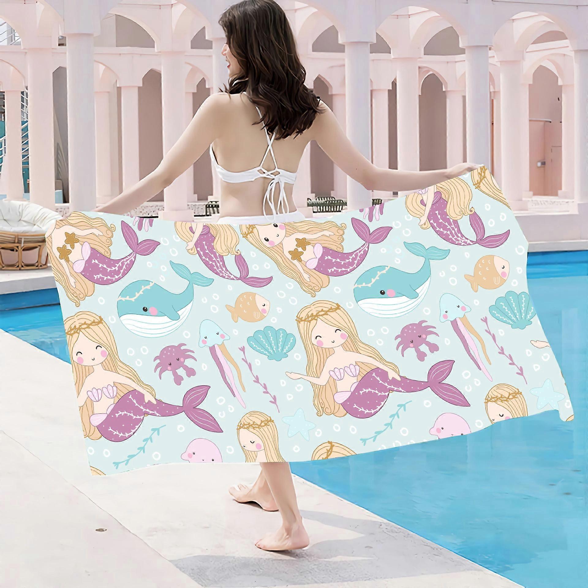 Purple Little Mermaid Children's Bath Towel, Pink Beach Towel, Swimming Towel, Quick-drying, Absorbent and Portable