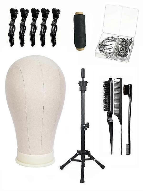 Complete Wig Styling Equipment for Novices: 22-inch Wig Stand + Tripod + T-Pins + Bristle Brush | Halloween Ready Wig Install Kit