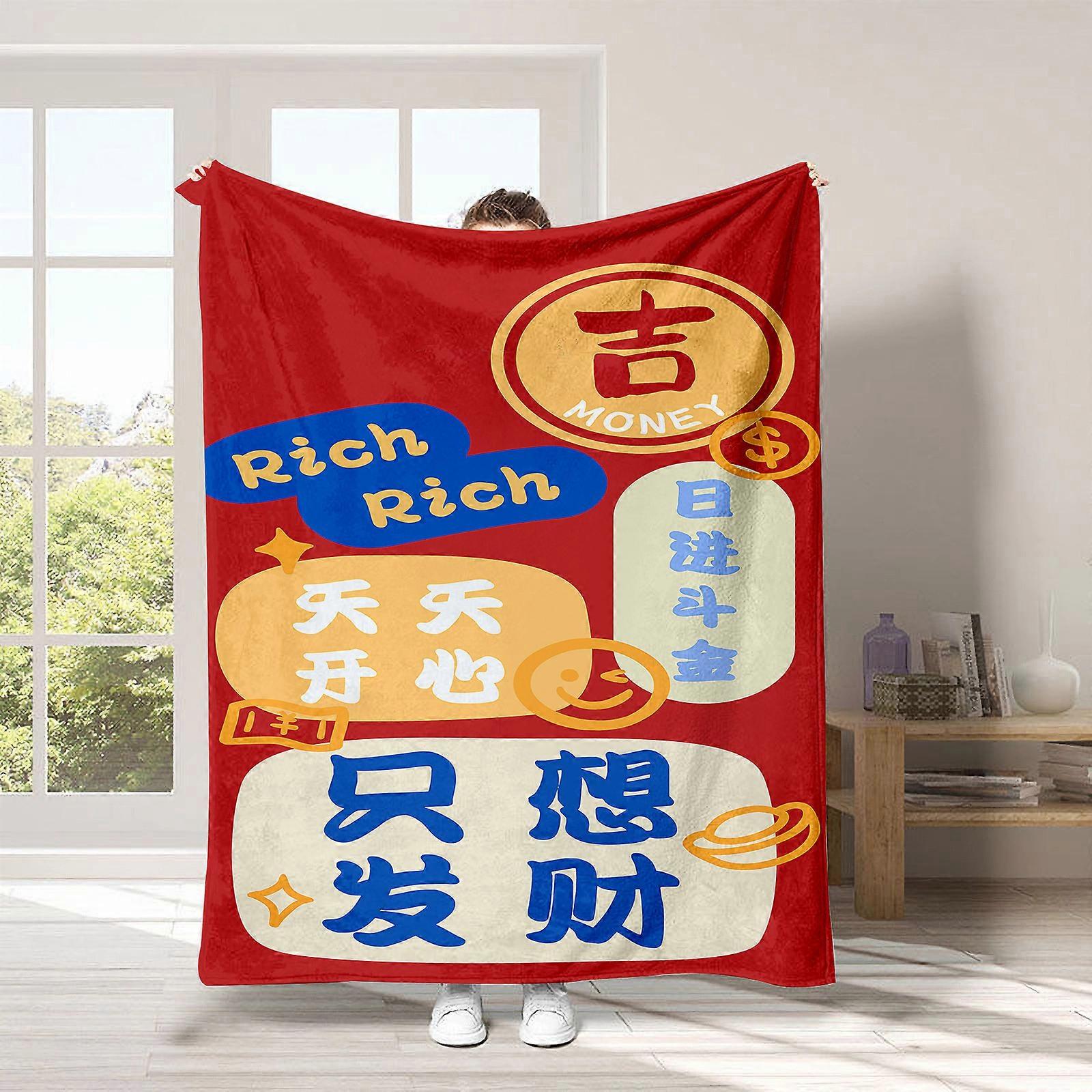Lucky Flannel Blanket, Prosperity and Wealth, New Year Home Decor, Sofa Cover, New Year Gift, Shawl Blanket