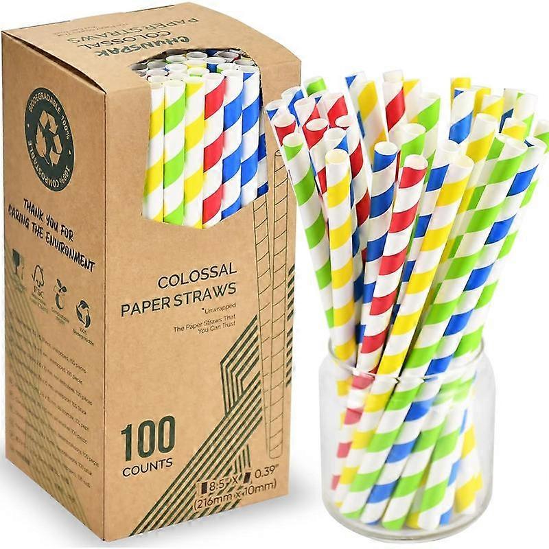 [10mm Wide] 8.5 inch Colossal Paper Straws for Smoothie & Milkshake - Colorful Stripes (Pack of 100)