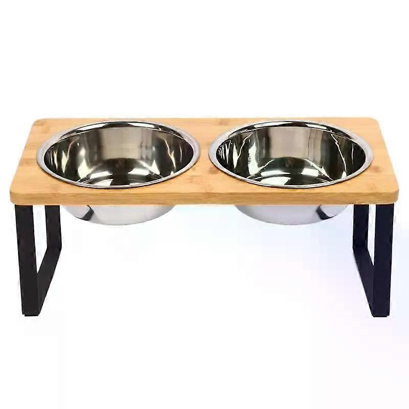 Elevated Cat Bowls 15 Degree Tilted Raised Feeder Wooden Stand Anti Vomit 2 Stainless Steel Bowls for Cats Puppies Health