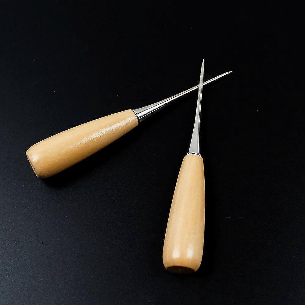 For Fun 2PCS Wooden Handle Awl DIY Sewing Accessories Fabric Punching Hand Stitcher Leather Goods Punch Hole Shoe Repair Tools