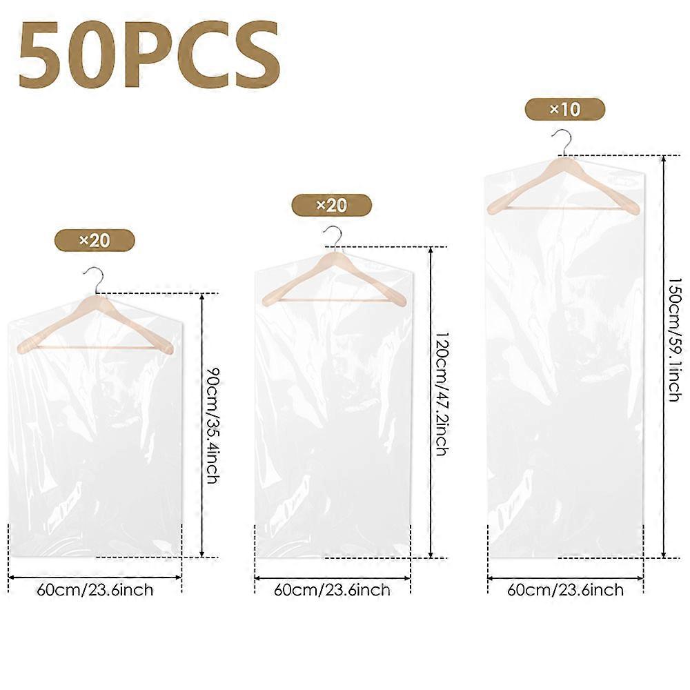 50/100Pcs Dcomt-proof Plastic Clothes Covers Clear Garments Bag 3 Sizes Recomable Dry Cleaning Bag for Protect Clothes Dress Suits