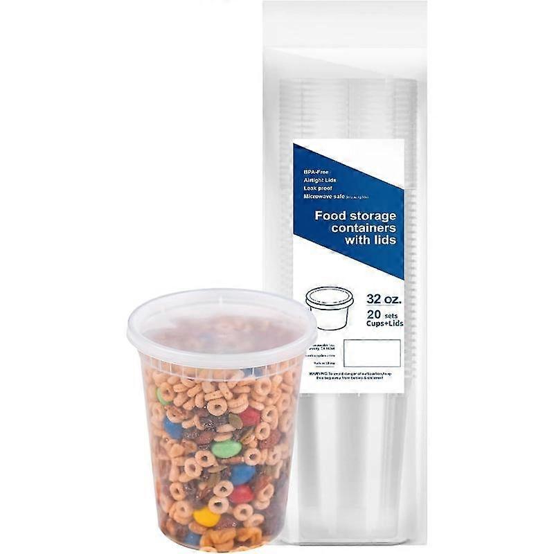 [32 OZ, 20 Sets] Plastic Deli Storage Containers with Airtight Lids | Microwave-, Freezer-, Dishwasher-Safe | | Heavy-Duty | Meal Prep | L