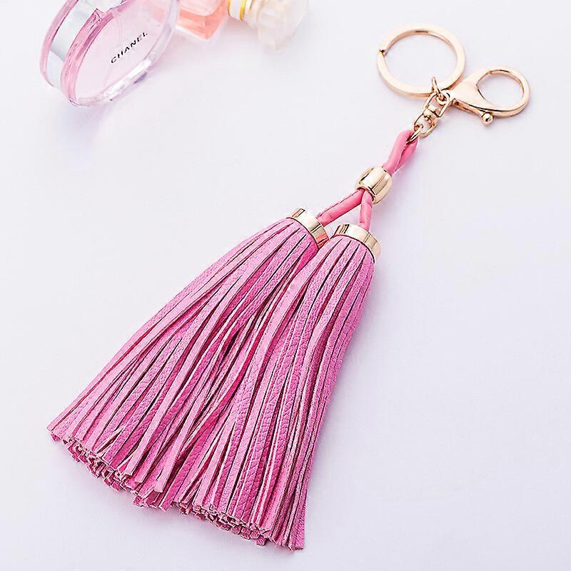 23.5cm Double Tassel Leather Women's Keychain Car Key Ring Key Chain Girl's Gift