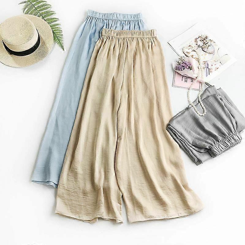 Women Wide-Leg Pants Drape Faux Silk Trousers Elastic High Waist Silky Shiny