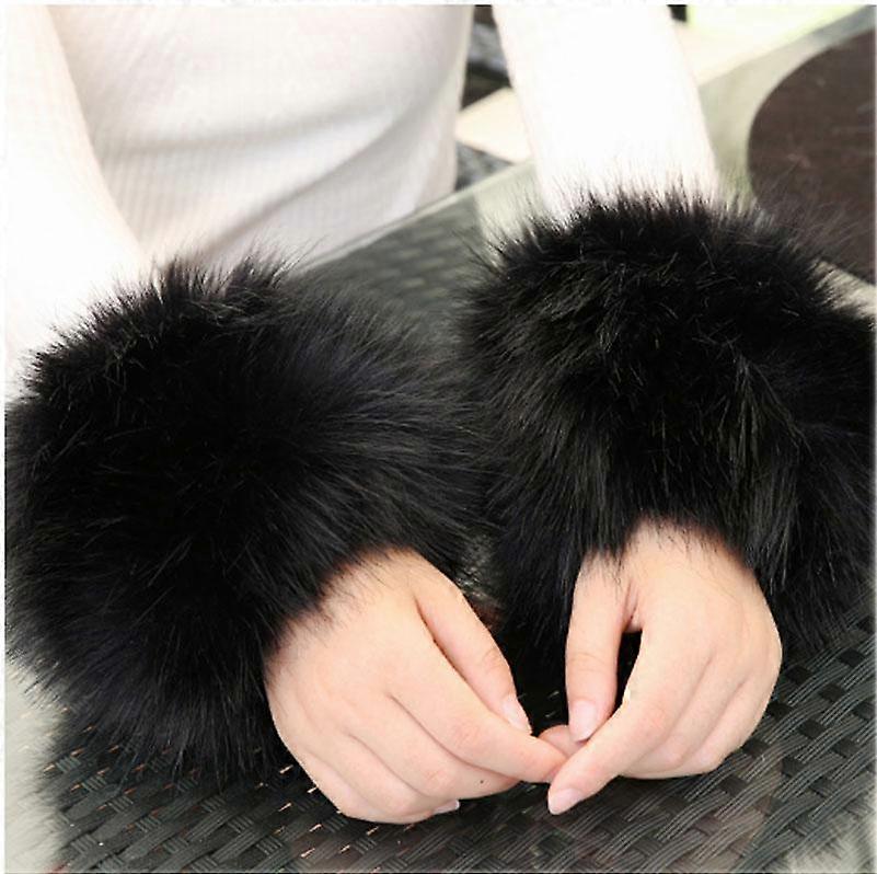 Women Winter Warm Sleeve Wristband Cuff Windproof Imitation Fox Fur Gloves
