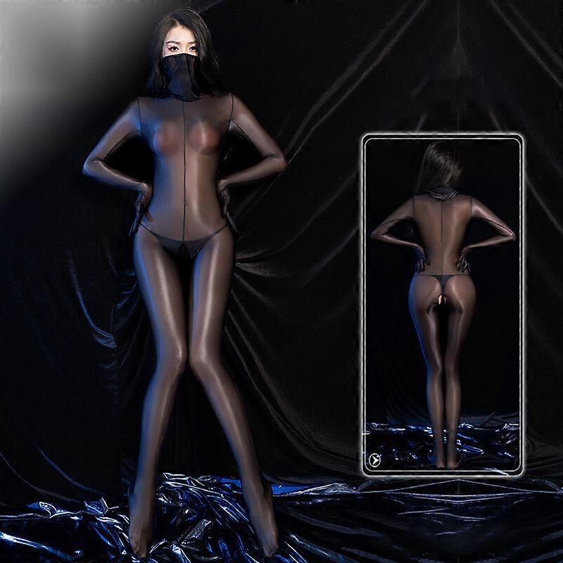 Women Sheer Shiny Glossy Bodysuit Sexy Catsuit Bodystocking Mask Gloves Tights
