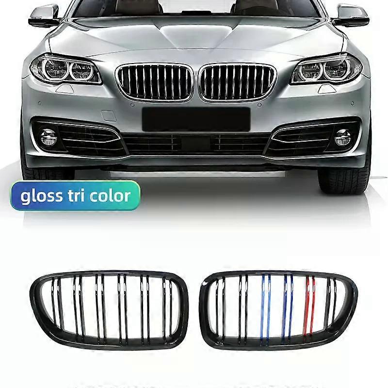 Glossy Black Front Kidney Double Slat Grill Grille For BMW 5 Series F10 F11 F18 2010-2017 Dual Line Racing Grills