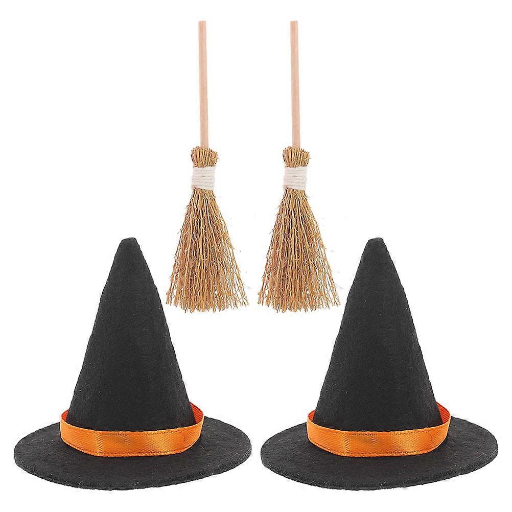 Hat Broom Set for Decor 2Sets Halloween Party Doll House Decors