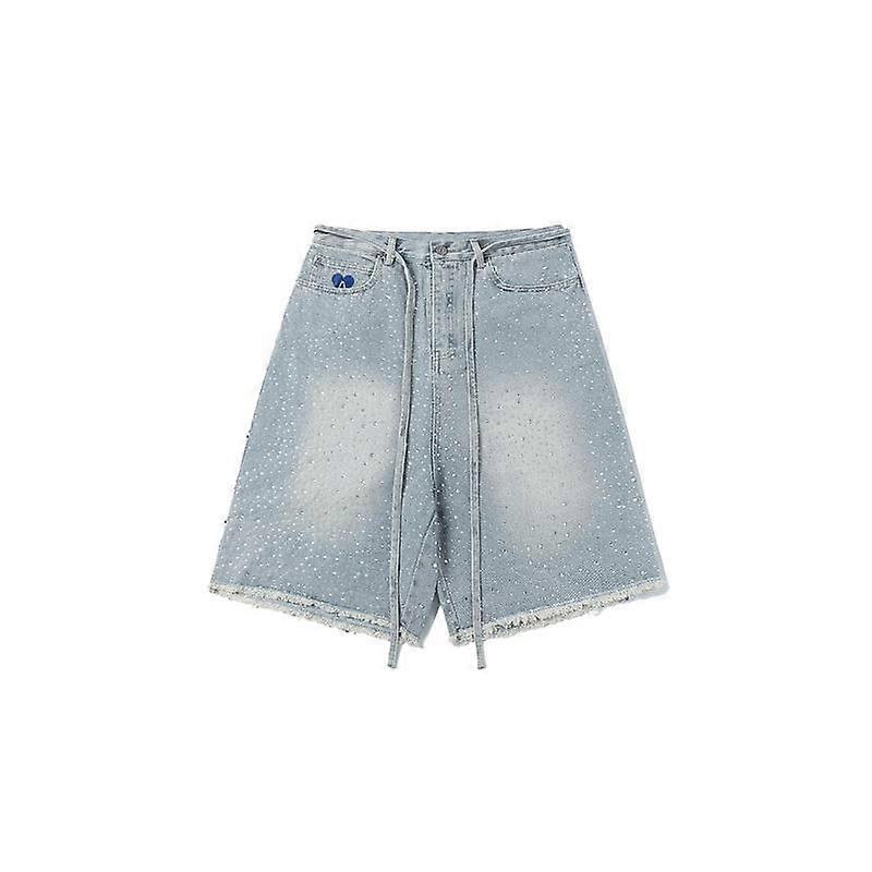 Aelfric Eden Rhinestone Application Loose Jorts Casual Soft Denim Jorts Wide Leg Streetwear Trendy Bottoms Baggy Jorts Summer Baggy Denim Sh