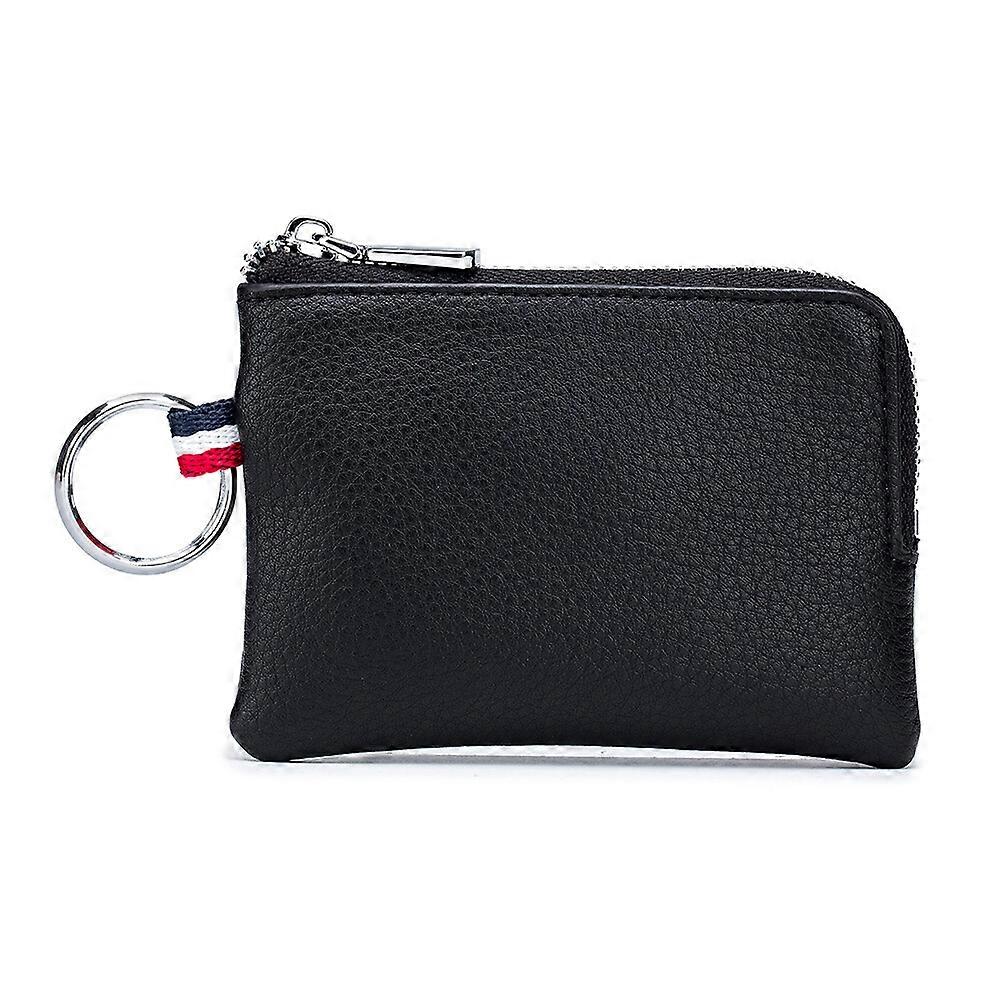 Genuine Leather Zipper Credit Card Case Small Key Wallets Keychain for Women Men