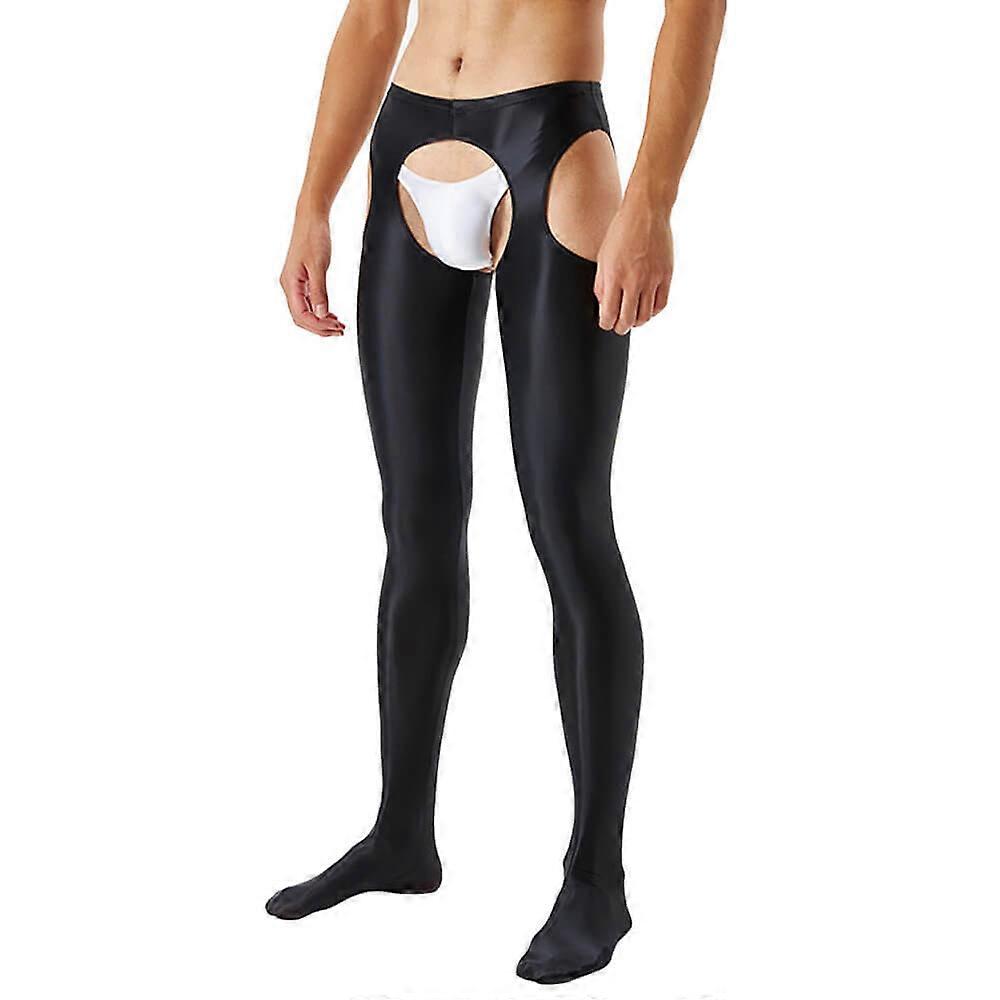 Men's Shiny Glossy Satin Pantyhose Hollow Out Suspender Tights Skinny Long Pants