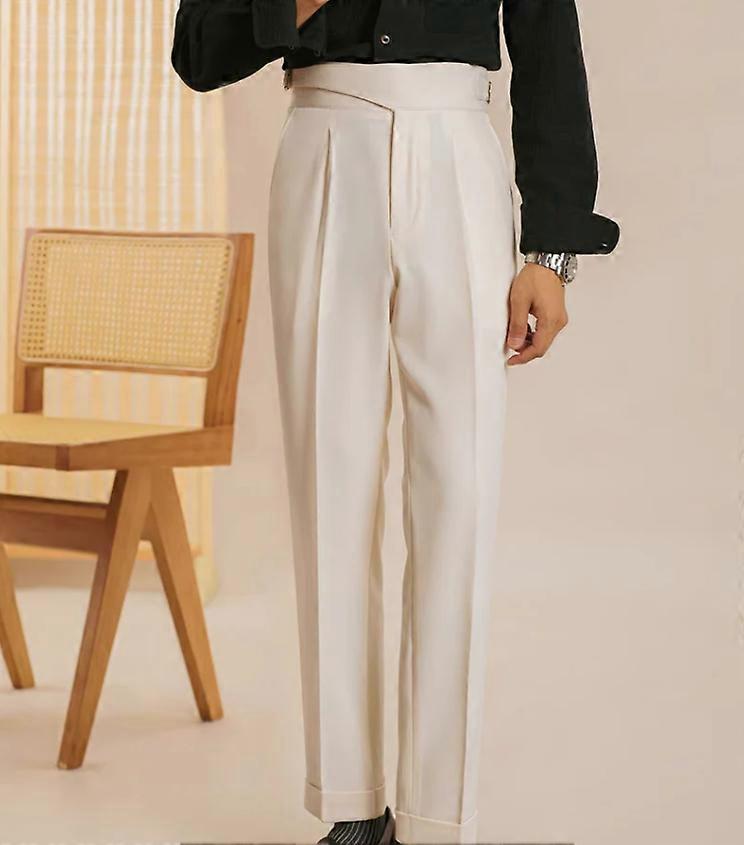 Adjustable Waist Men's Pants Workwear Pleated Front Business Cuffed Trousers