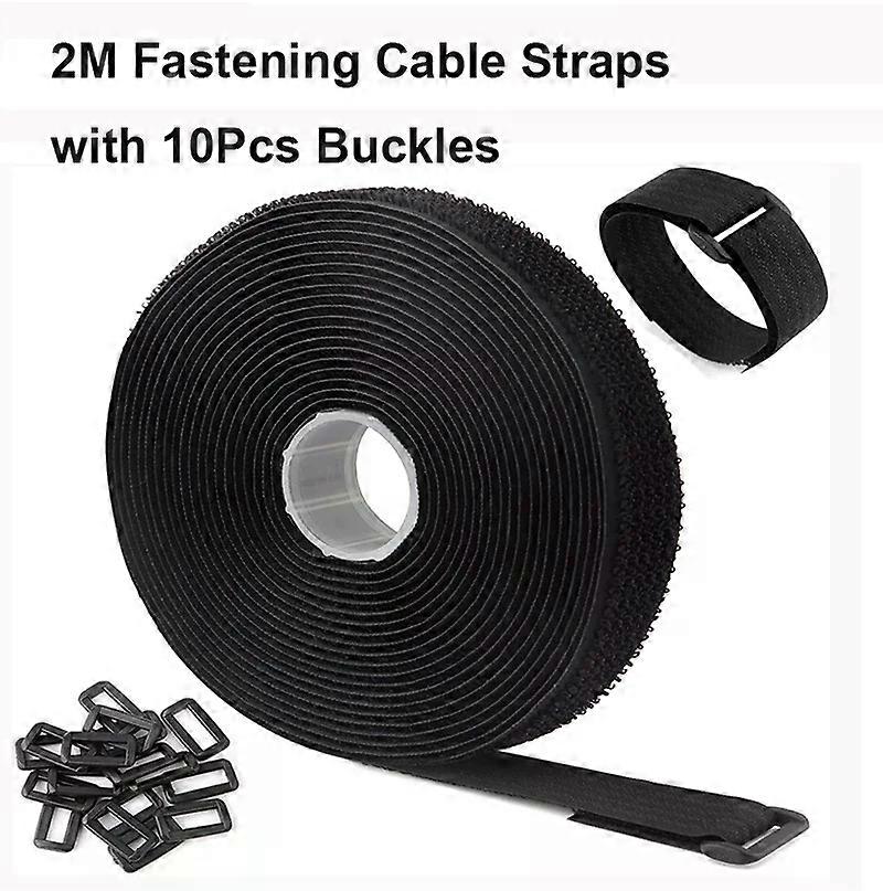 2Meter Hook and Loop Fastening Tape with 10 Buckles Free Cutting Length Cable Straps Resealable Cable Tie 16/20/25MM