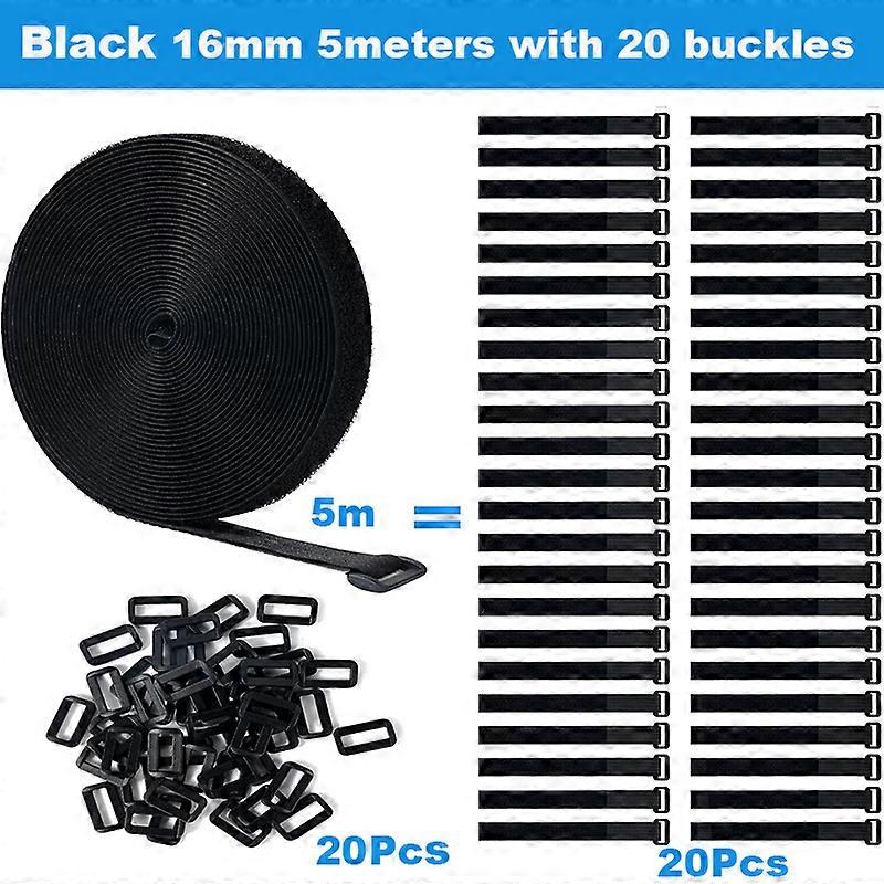 5Meters Reusable Cable Ties Freely Cut Lengths hook loop Self-Adhesive Fastener tape Straps with 20 Buckles For Cable Organiser