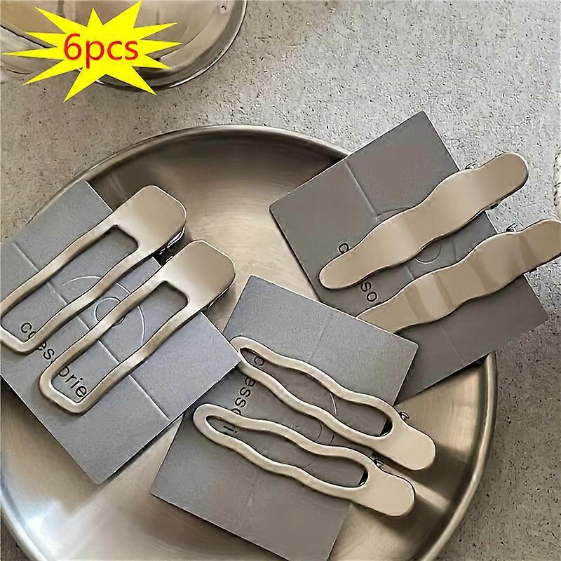 6pcs Silvery Metal Hair Clips Wave Alligator Duck Bill Styles with Tassels Non-Slip Grip Y2K Bangs Accessories Valentine Gift