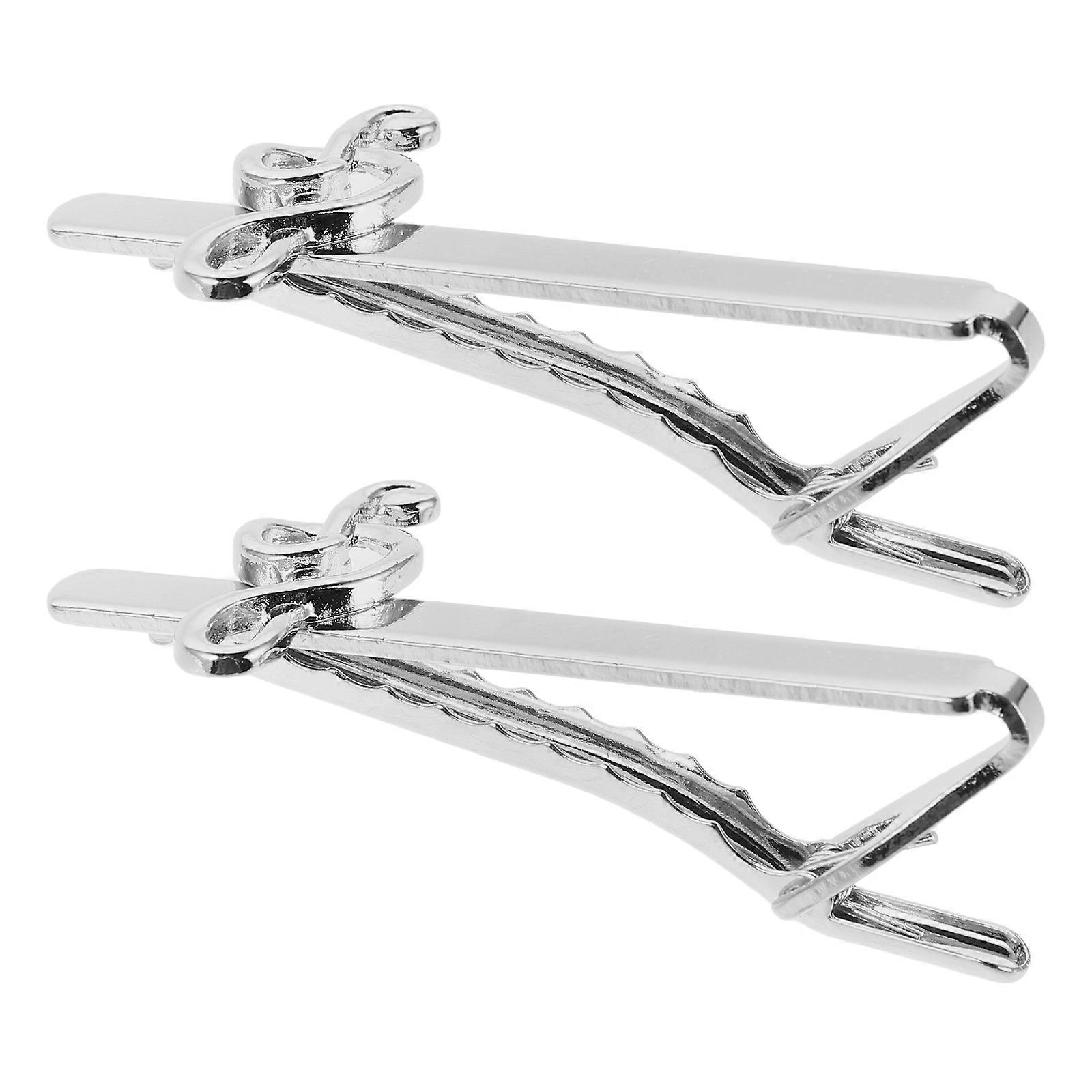 Music Note Tie Clips for Men Business Formal Wear Copper Silver 2pcs Portable Accessories for Dad