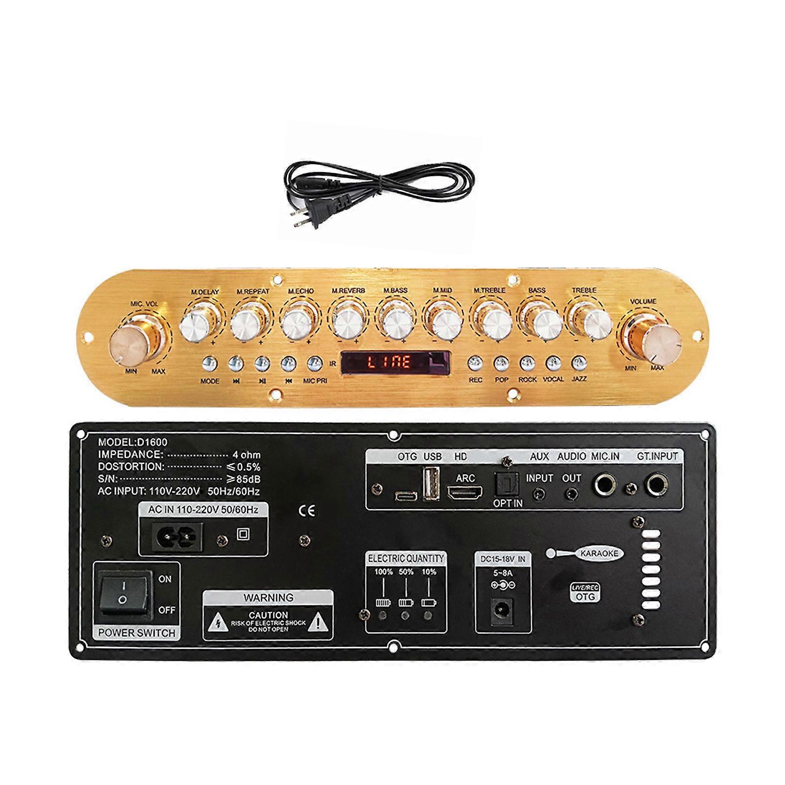 Features: The Bluetooth-compatible amplifier board deliver 50w+50w power with double microphone input and Bluetooth-compatible connection, supporting power sources for installations. Featuring USB slots, and remote, this sound amplifier module ensures effortless operational across multiple sound input option. Ideal for karaoke enthusiasts, event organizers, and home theater owners professional sound amplification with wireless music streaming capabilities. Perfectly adapts to diverse environment including home entertainment systems, outdoor parties, and small stage performances requiring subwoofer integration. Engineered with safety standard, its plastic and metal construction enables integration into loudspeaker setups while maintaining heat dissipation. Specifications: Component:Metal+Plastic Color:Gold/Black Input: 110-220V,DC15-18V. Power: 2.0 channel, 50W+50W Size:Approx.26x5.7cm/10.24x2.24inch Package Includes: 1 Set Amplifier Board note: 1.Please allow 1-2cm errors due to manual measurement, making sure that you not mind before order. 2.Due to the differences between different monitors, the picture may not reflect the actual of the item.