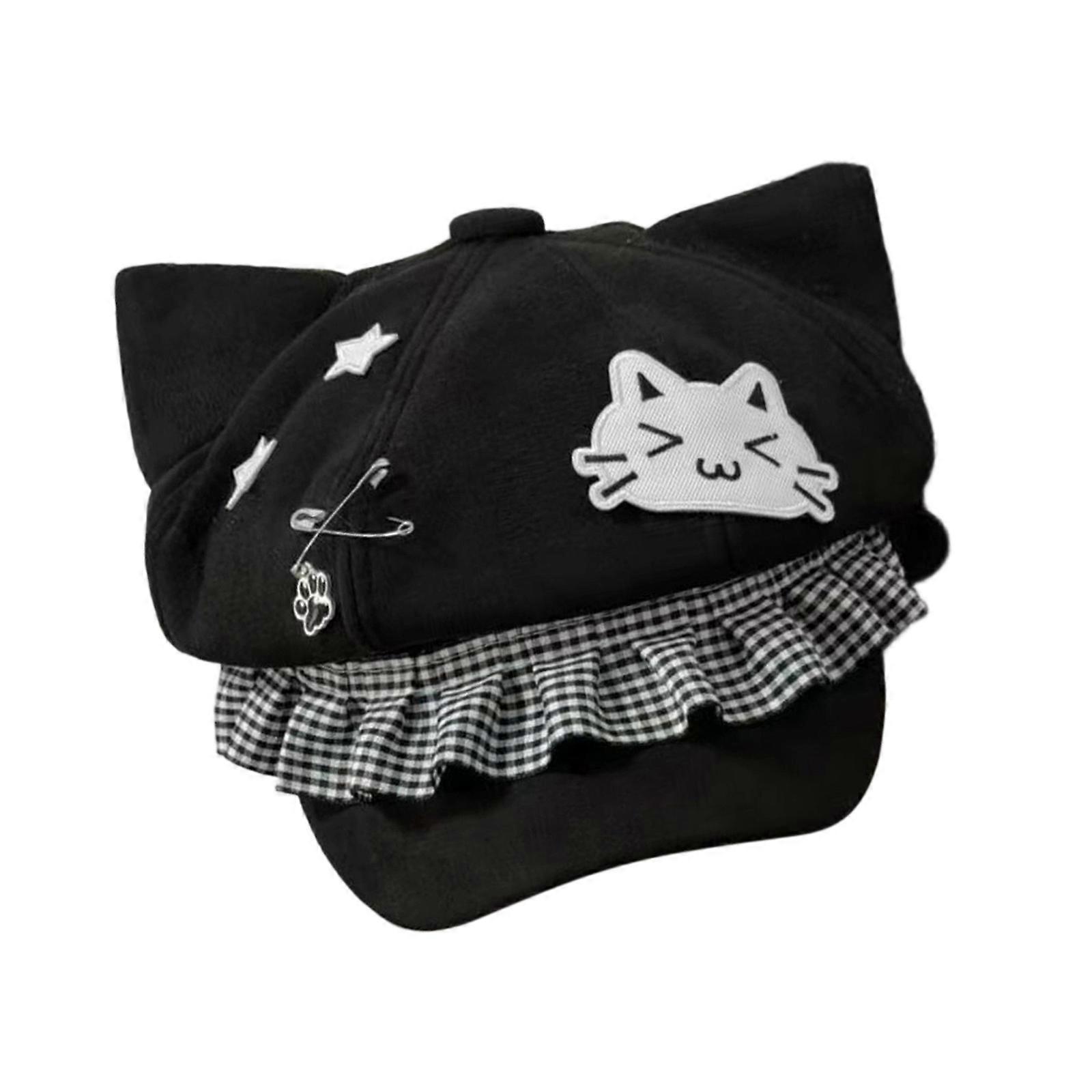 Punk Beret British Elegant Painter Hat with Star Fashion Kitten Ear Cabbie Hat for Outdoor Walk Cabbie Hat blackplaid