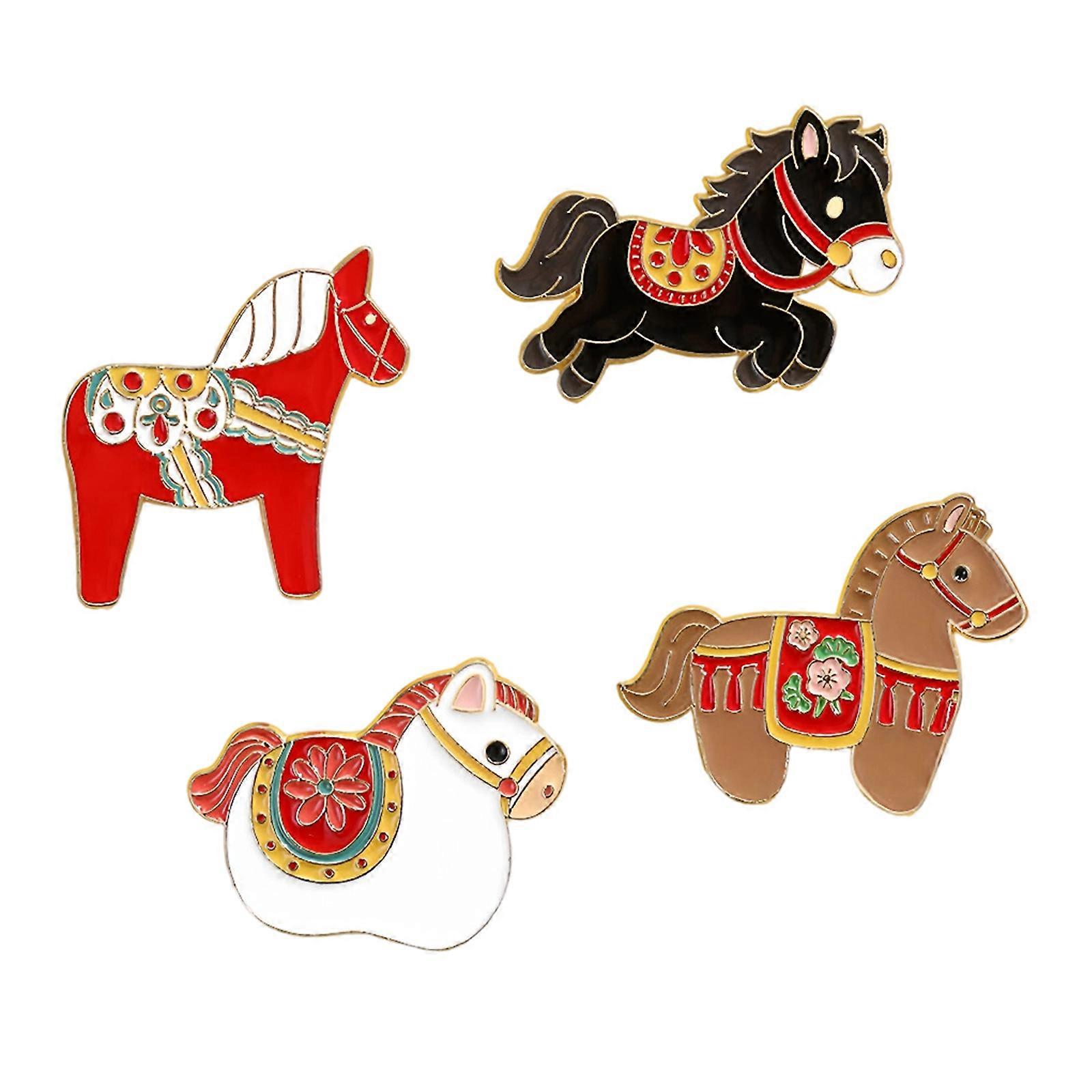 4Pcs Vintage Horse Accent Brooch Elegant Statement Chest Jewelry Gift Excellant Craftsmanship Unisex Lapel Pin Multicolor