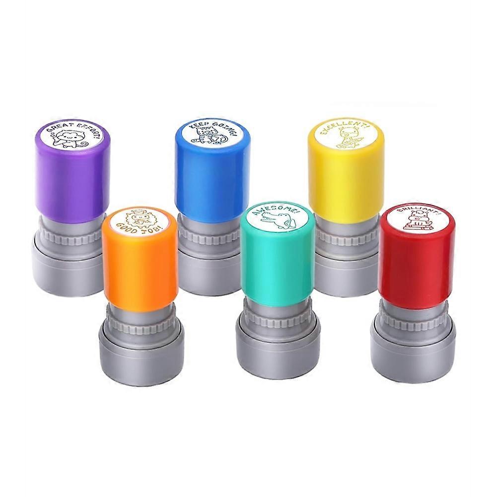 6-Piece Teacher Stamps - 6 Colorful Animal Grading for Classroom Teacher Stamps for Grading Inking Stamp Behavior Stamps