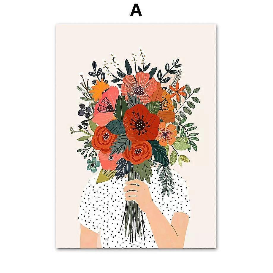 Girl Flower Line Face Tiger Lemon Boho Wall Art Canvas Painting Nordic Posters And Prints Wall Pictures For Living Room Decor