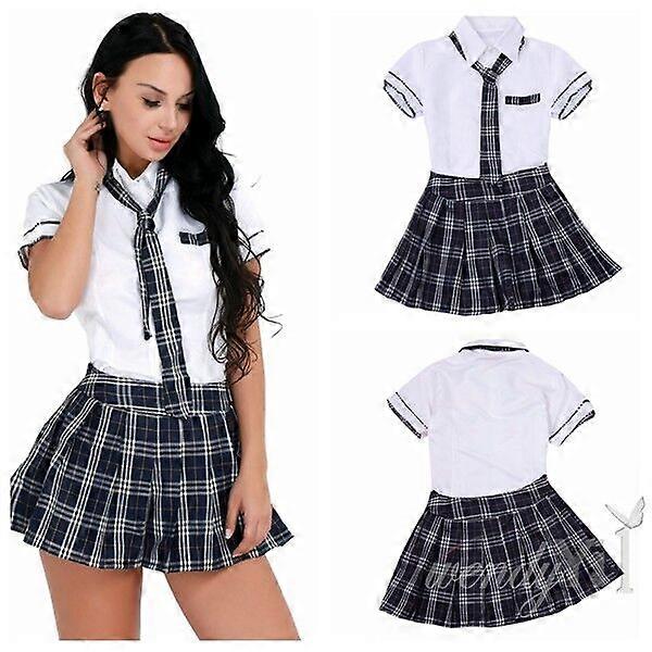 Women Sexy School Girl Uniform Adult Cosplay Costumes Lingerie Top + Skirt Dress
