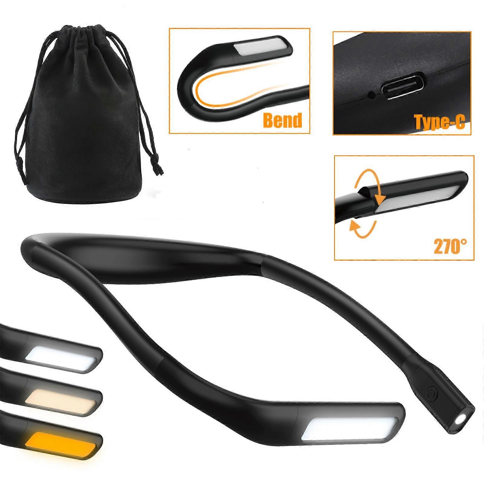 LED Neck Reading Light USB Rechargeable Flexible Hands Free Reading Lamp Bendable Hanging Book Light For Reading Camping Running