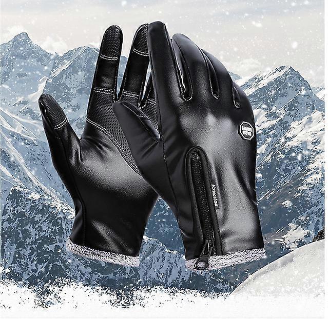 Men Winter Leather Thermal Driving Gloves Windproof Warmer Skiing Gloves Mittens