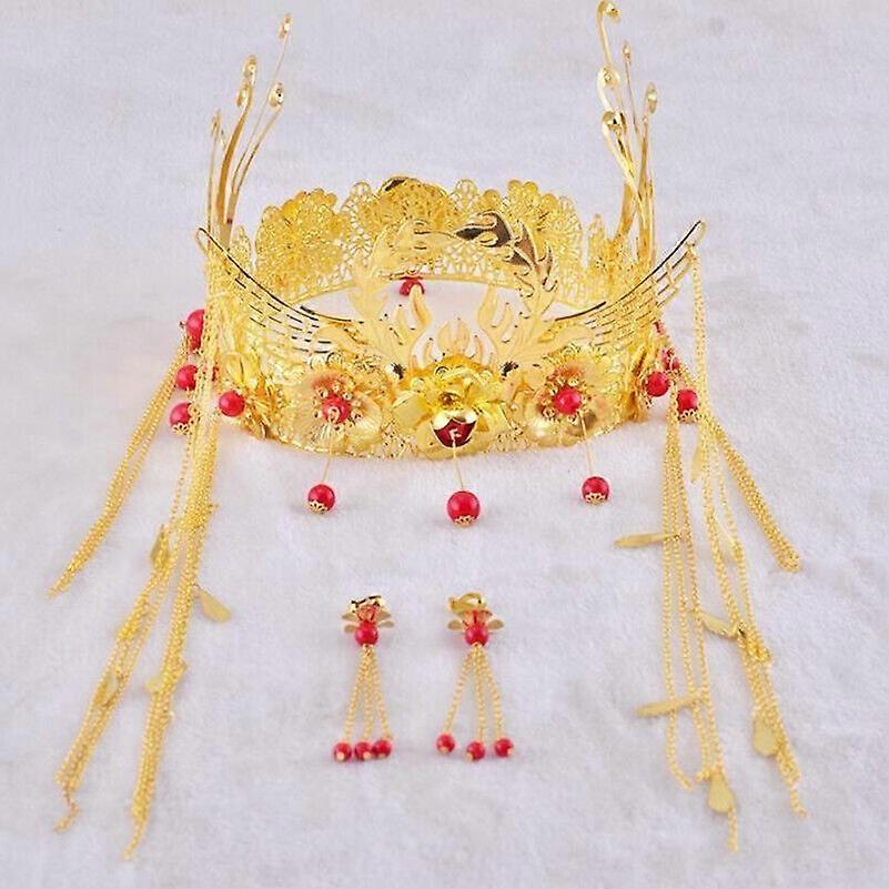 Chinese Style Crown Bride Wedding Hair Ornaments Tassel Headdress+Earrings