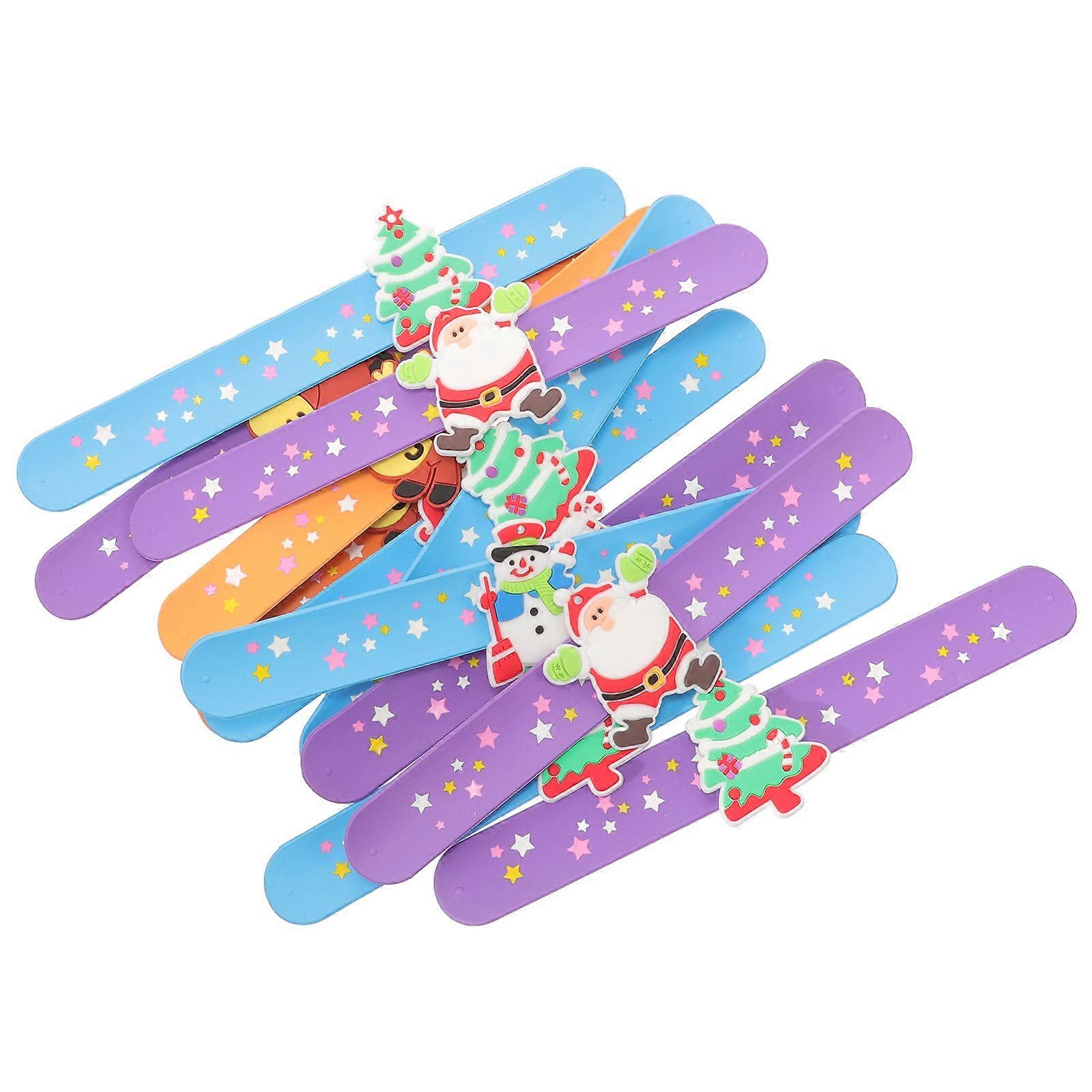 Christmas Bracelets for Kids Snap Wristband 12Pcs Santa Snowman Slap Band