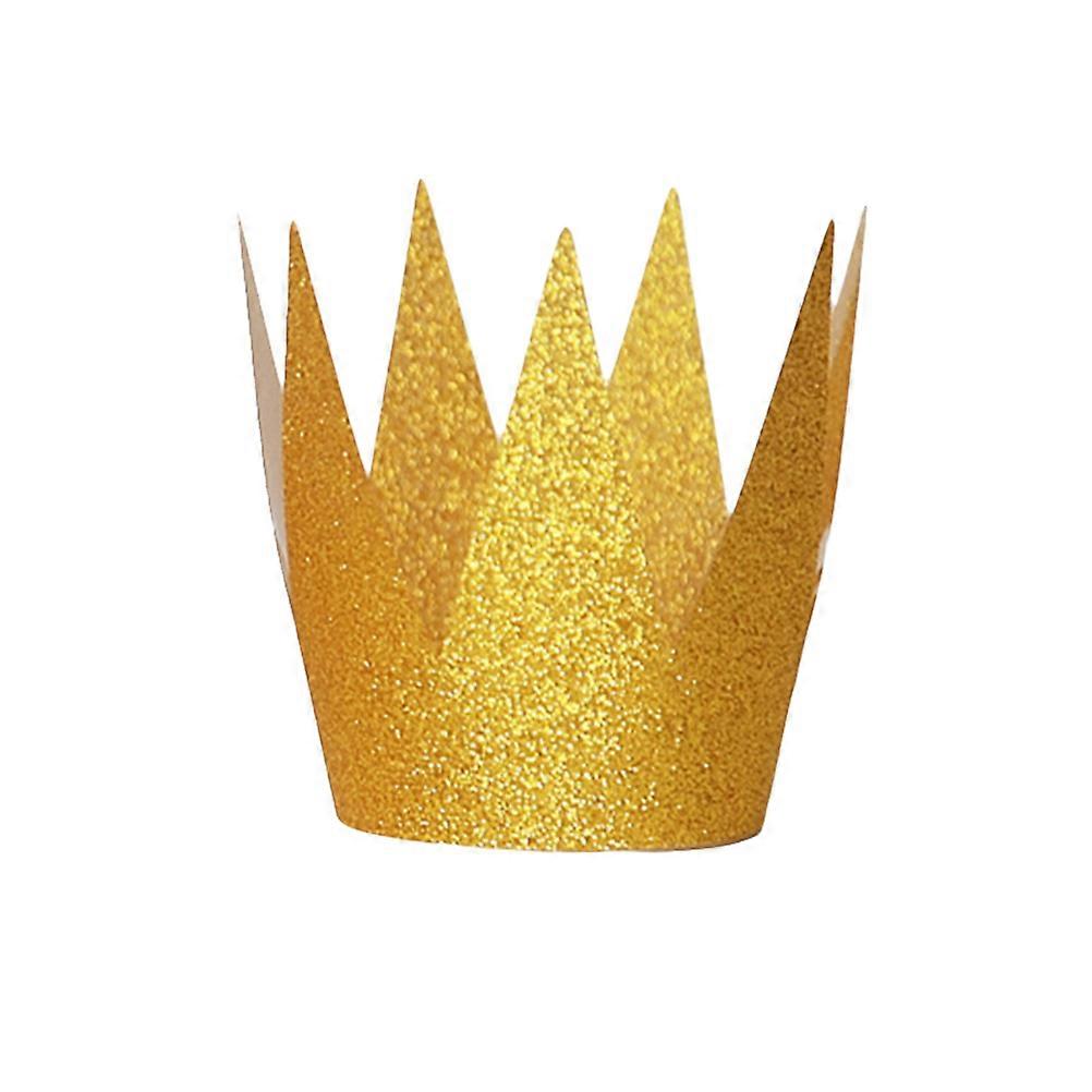 6 Glitter Crown Hats for Birthday Parties Elegant Plastic Design with Royal Glory Golden