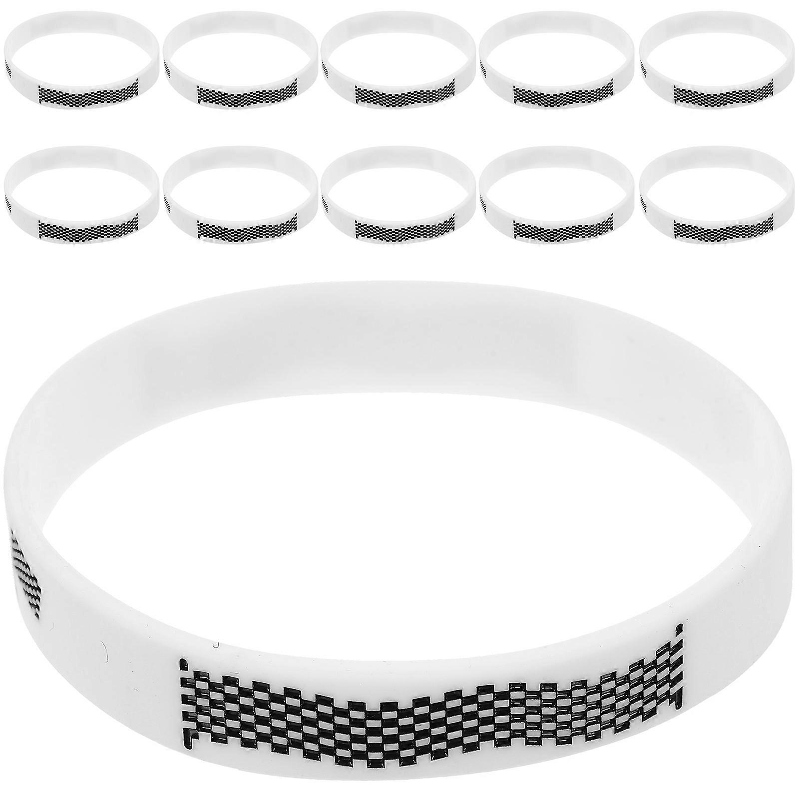 White Silicone Wristbands for Decor Comfortable to Wear Checkered Pattern 12pcs