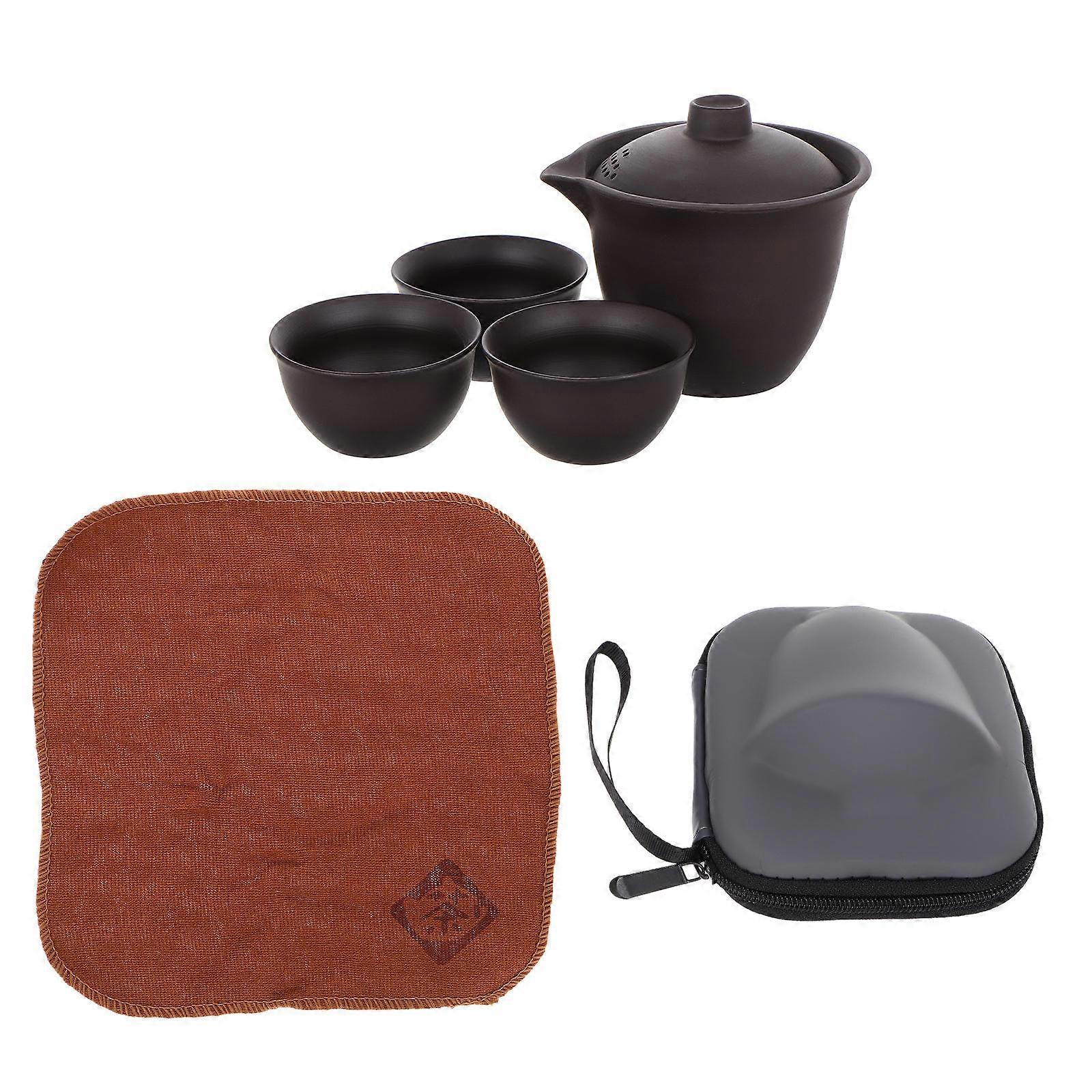Portable Travel Tea Set with Ceramic Material and Coffee Color 1 Pot 3 Cups Excellent for Outdoor