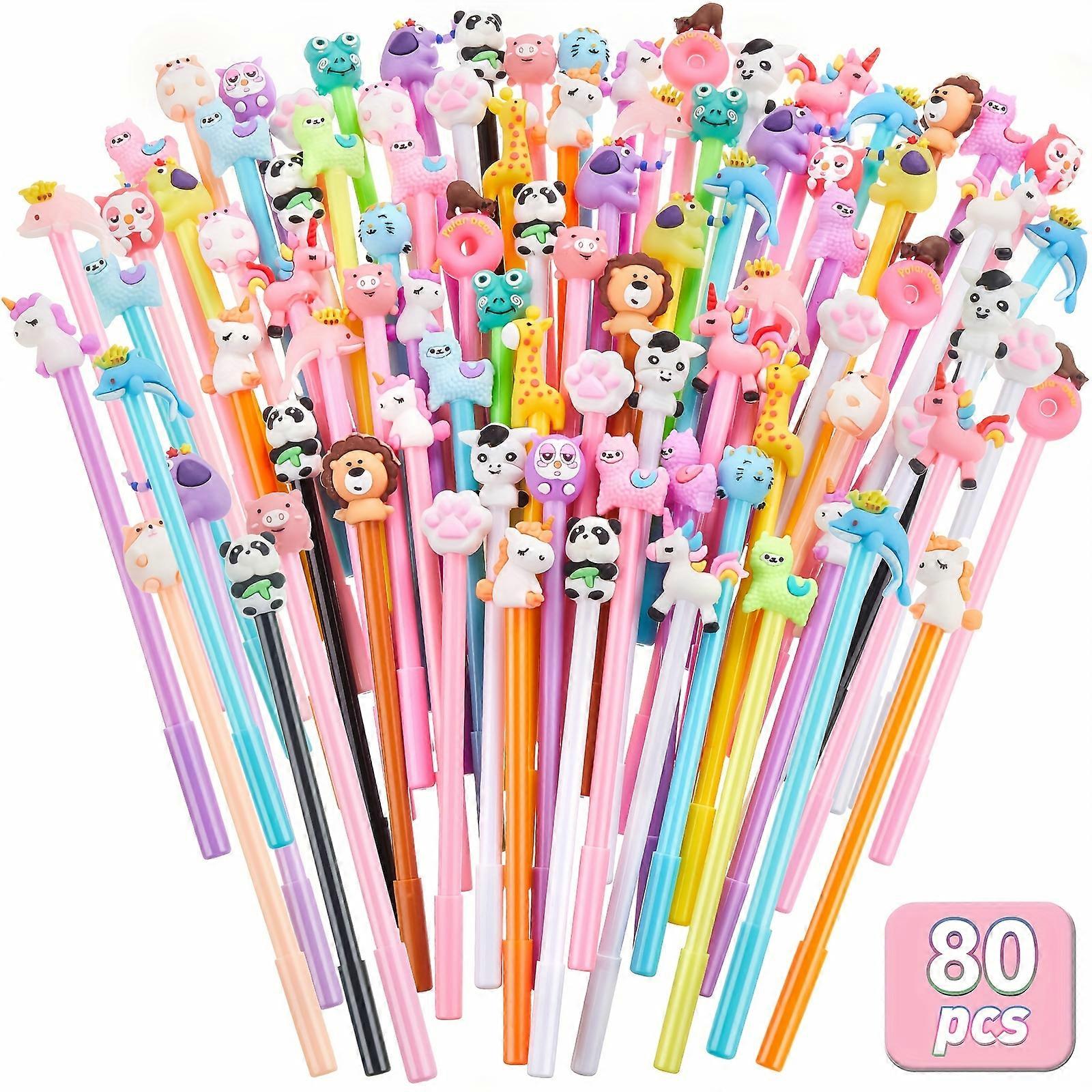 80pcs Cute Pens Bulk Fun Cartoon Black Gel Ink Cool Animal Pens for 28 Styles Assorted Style Novelty Rollerball Cartoon