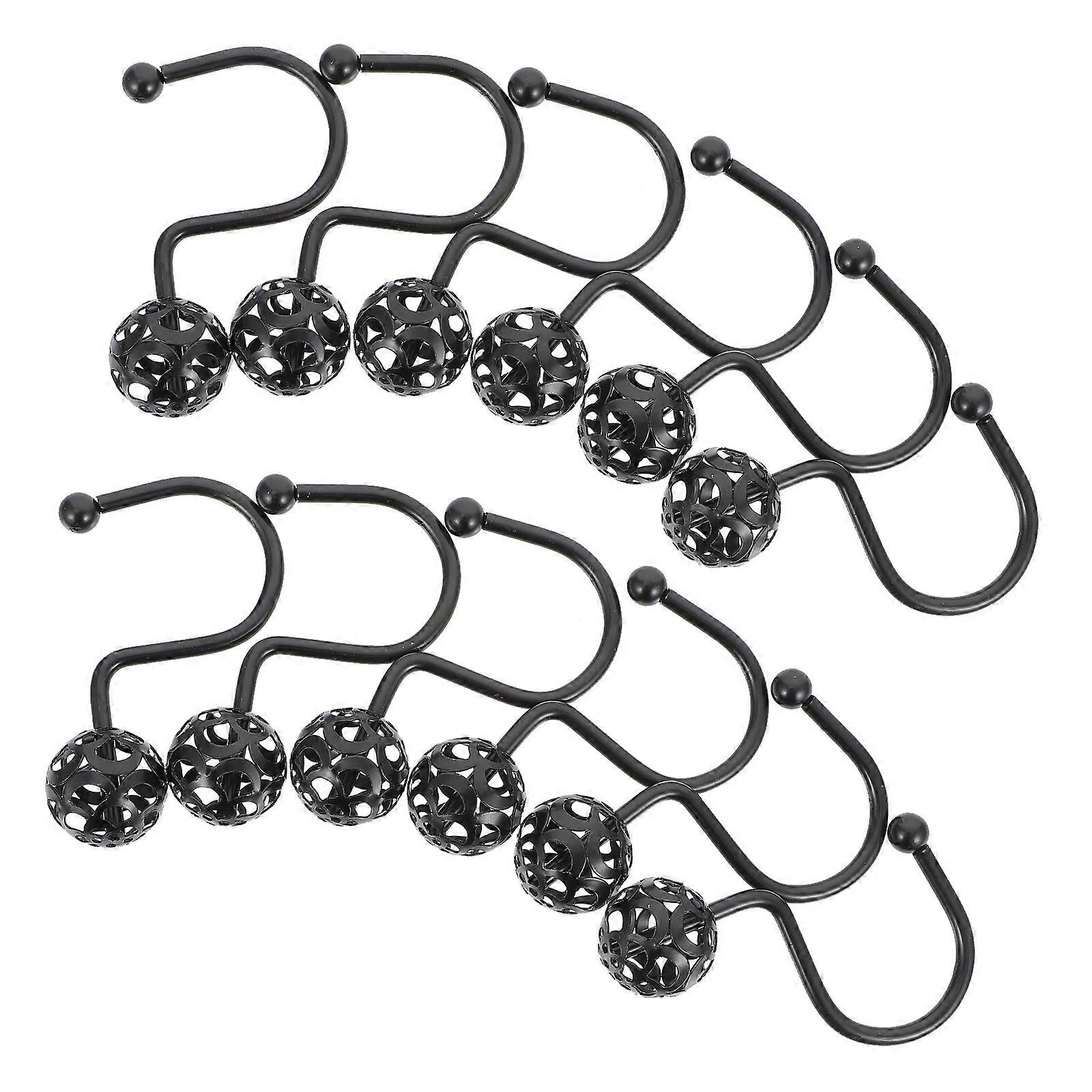 Black Metal Ball Shower Curtain Hooks Curtain Fixing Accessories 12Pcs