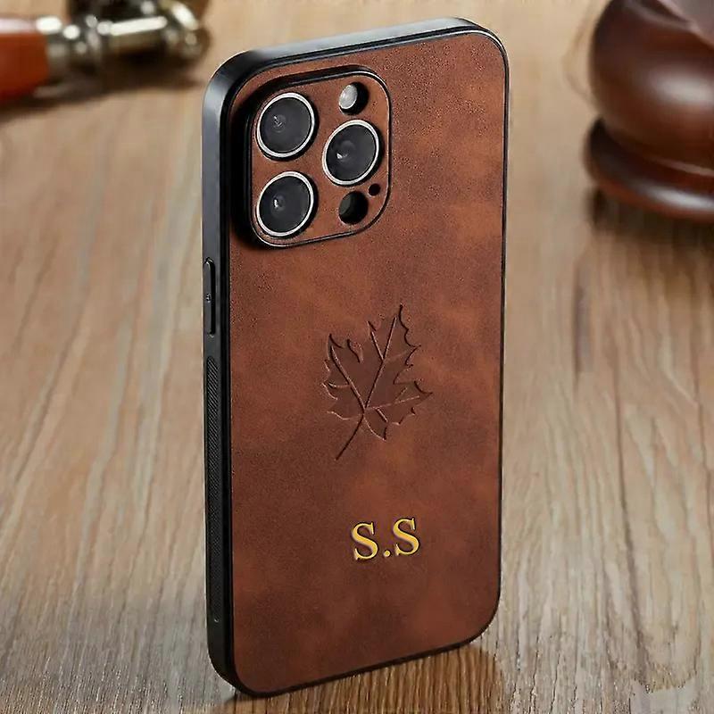 For iPhone 16 Personalise Custom Name Maple Leaf Pattern Leather Phone Case For iPhone 16 15 14 13 12 11 Pro Max Back Cover