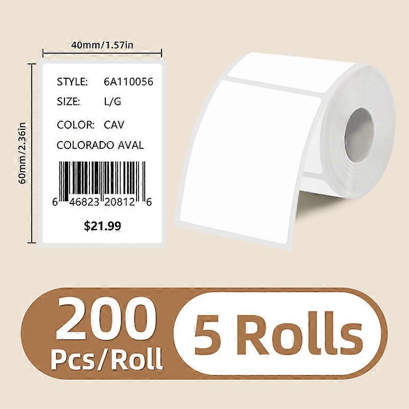 5 Rolls of White Label Stickers, 30Mm/40Mm/50Mm Wide, Compatible with M110/M221/M220/M120/M200/Etc Portable Handheld Thermal Label Printers,