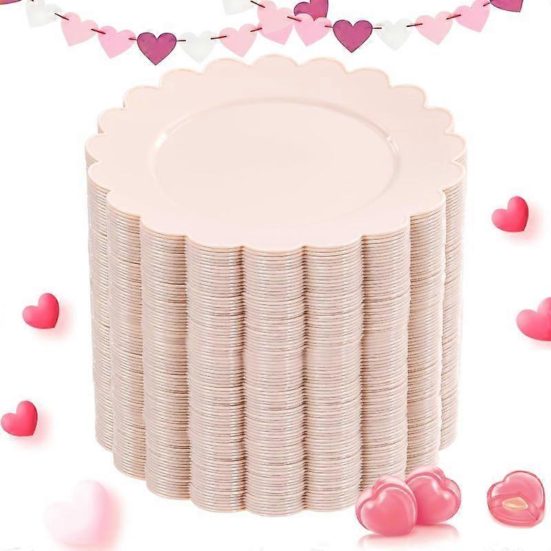 72-Count Pink Plastic Plates Disposable 7.5 Inch - Scalloped Edge Dessert Plates for Valentines Day, Parties, Birthdays, Weddings | Lightwei