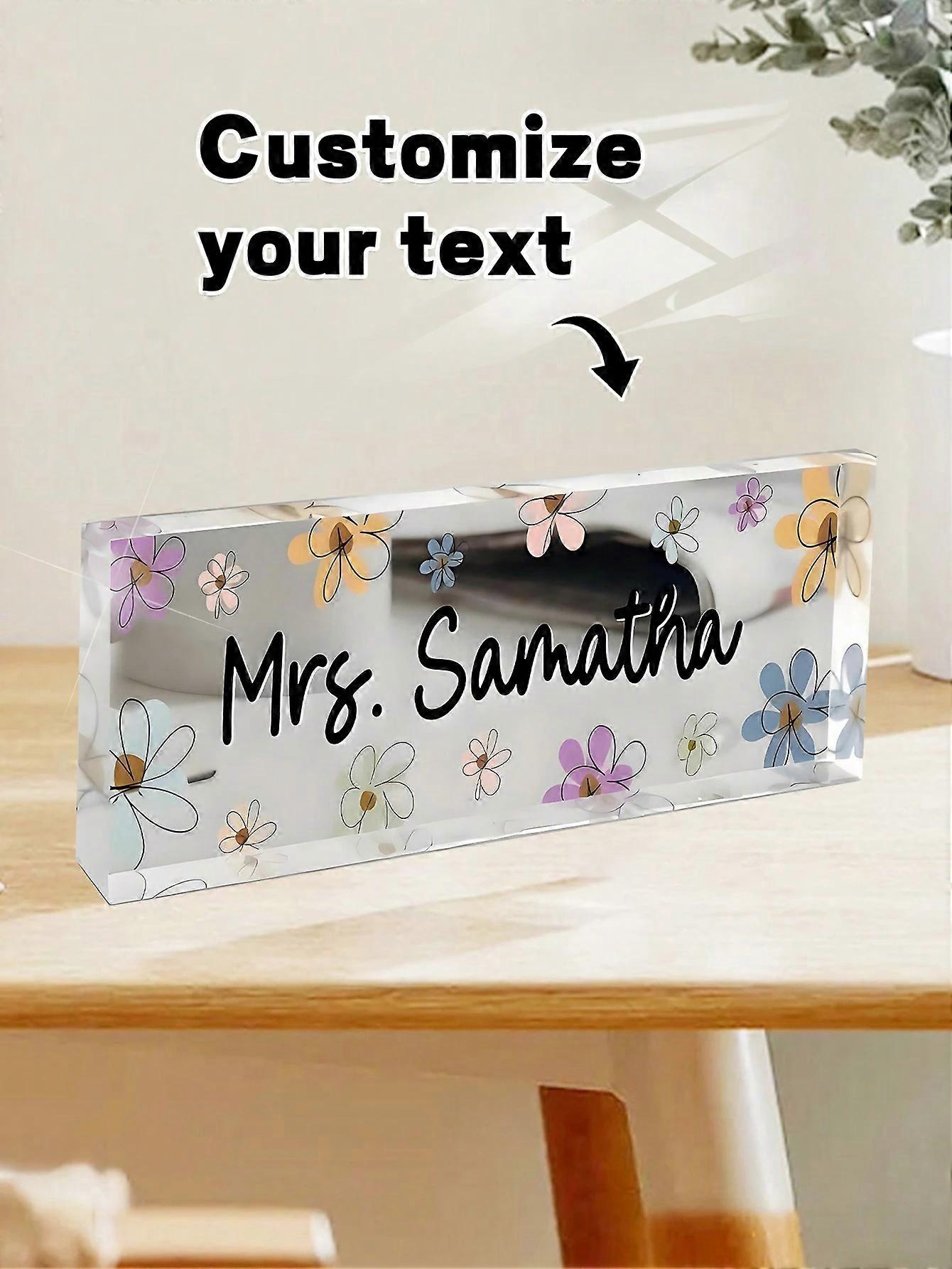 20*6CM Custom Floral Acrylic Desk Nameplate, Reusable Glossy Finish Sign for Teacher Appreciation & Office Gifts, Back to School