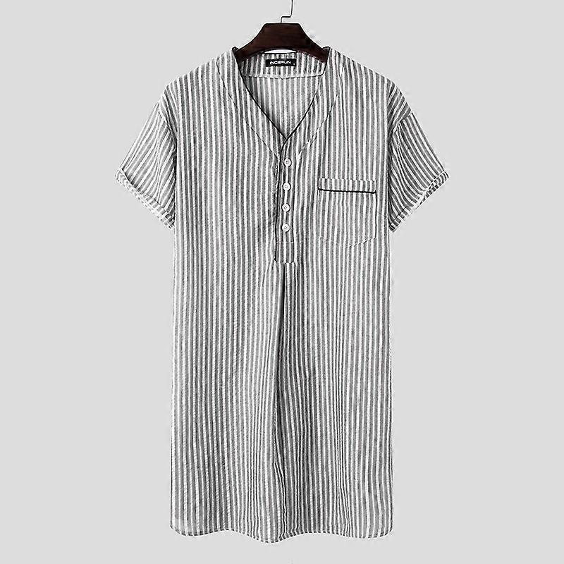 US STOCK Mens Short Sleeve Striped Pajamas Nightshirt Dress Sleepwear Nightwear