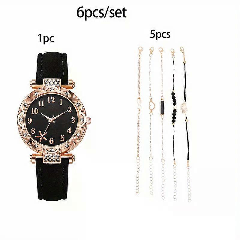 1pc/6pcs - Women's Watch Fashion Rhinestone Ladies Analog Quartz Watches Bracelet Set Girls Clock Gift